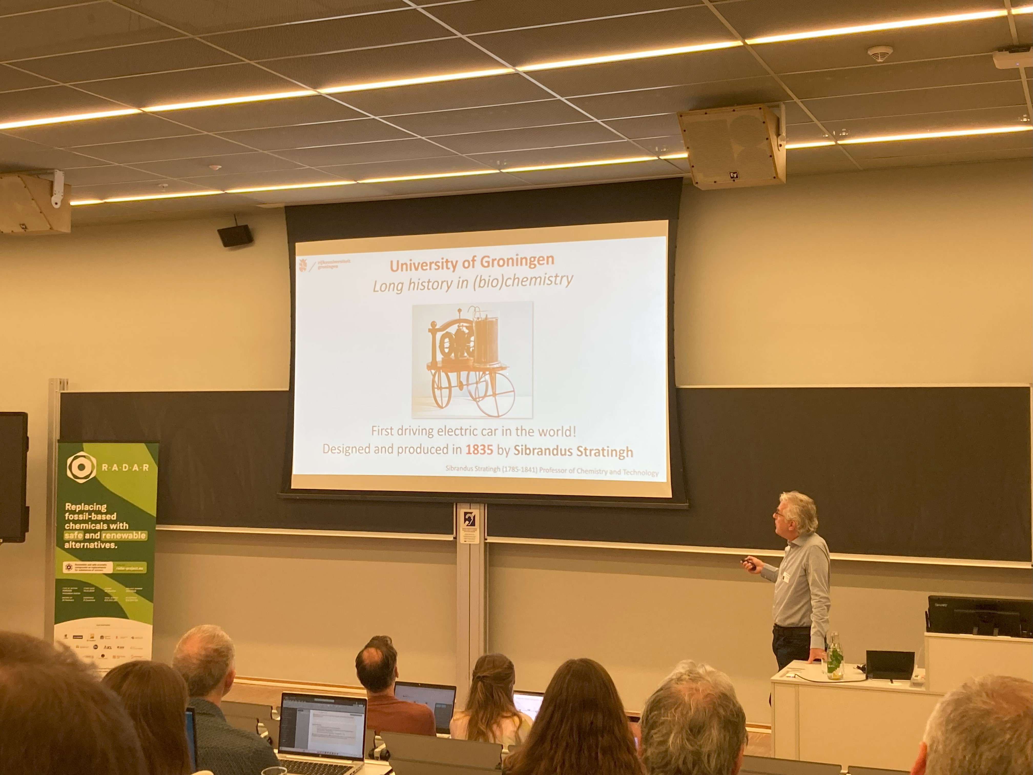 In June 2025, the RADAR consortium held a two-day General Assembly at Rijksuniversiteit Groningen. Partners presented progress across work packages, including scaling up bio-aromatics, finalizing industrial benchmarks, and aligning hazard assessment methods. The event also featured a lecture on the environmental impact of wood usage and discussions on data management to support computational modeling. The meeting marked a significant step forward in advancing Safe and Sustainable by Design chemical innovations.